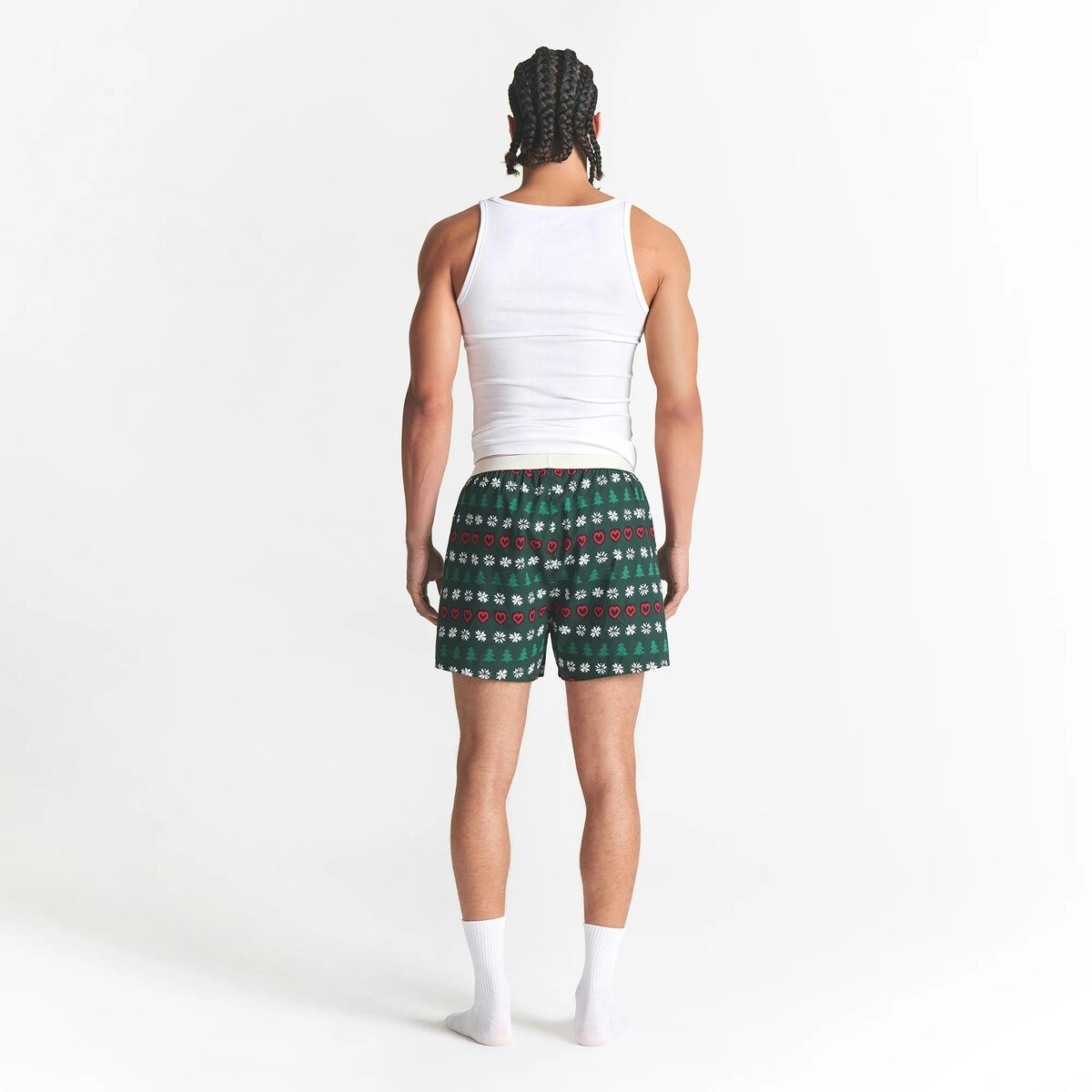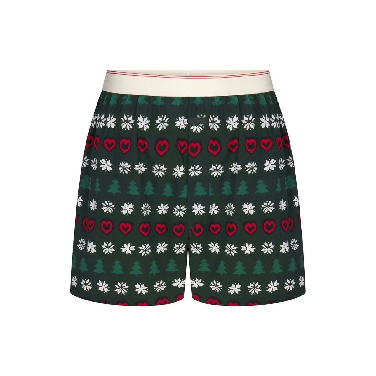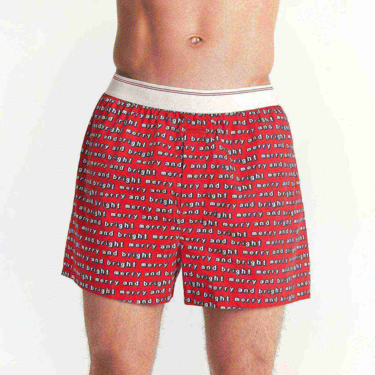 • Silver Jingle Bells Print: Encased elastic waistband, Logo label at center front fly, Functional fly with hidden button; Red & Spruce Prints: Tipped elastic waistband with repeating logo, Logo label at center front fly, Functional fly with hidden button