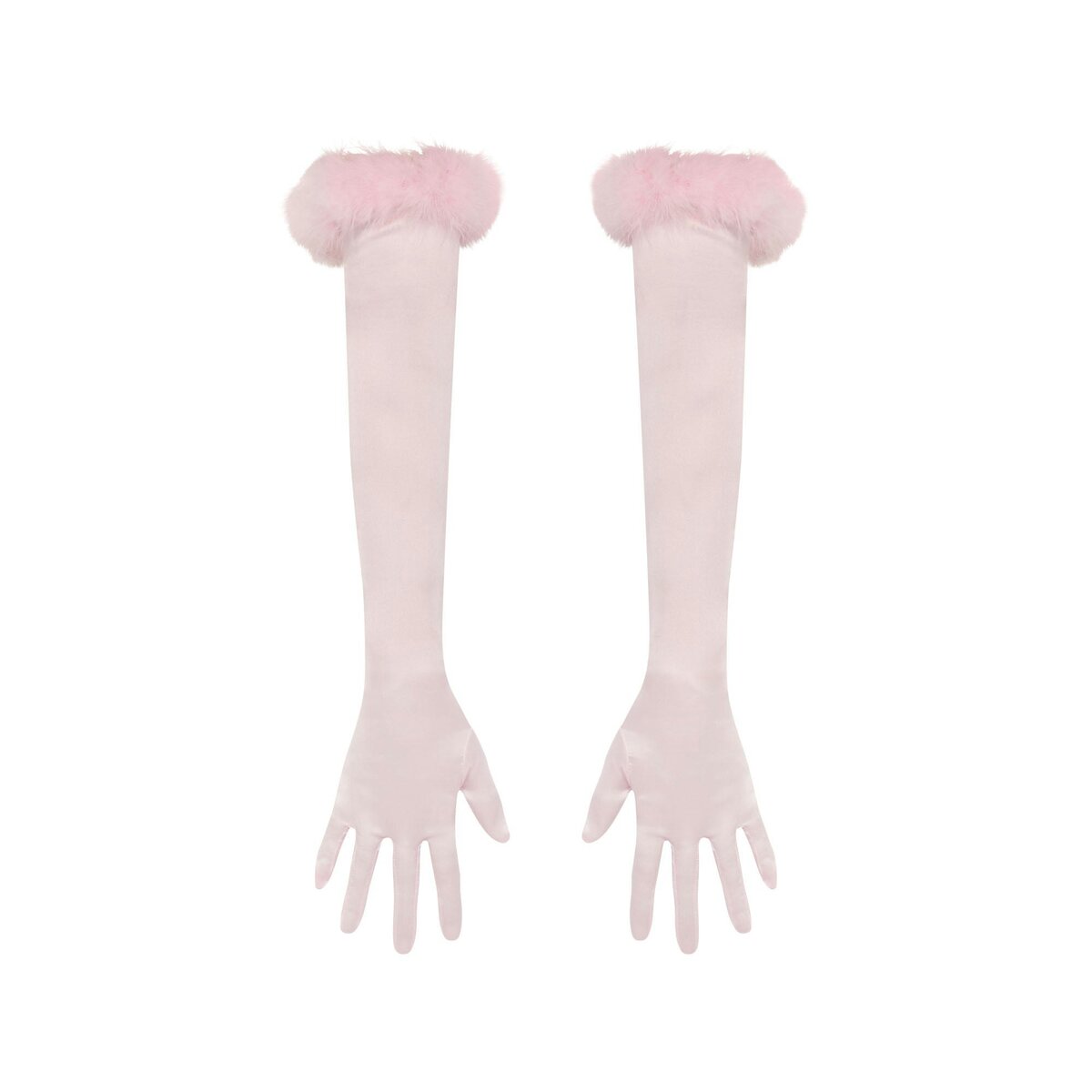 • Elbow length gloves, Removable feather trim
