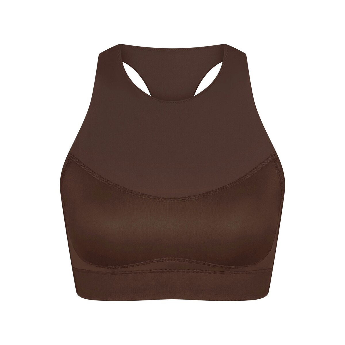 - Built in soft lightly molded pads for comfort and coverage, Silicone matte logo at center front, Cut out detail at lower back, Racerback with hook and eye closure, Lined in power mesh for additional support, Fits tight to body, Best for high impact