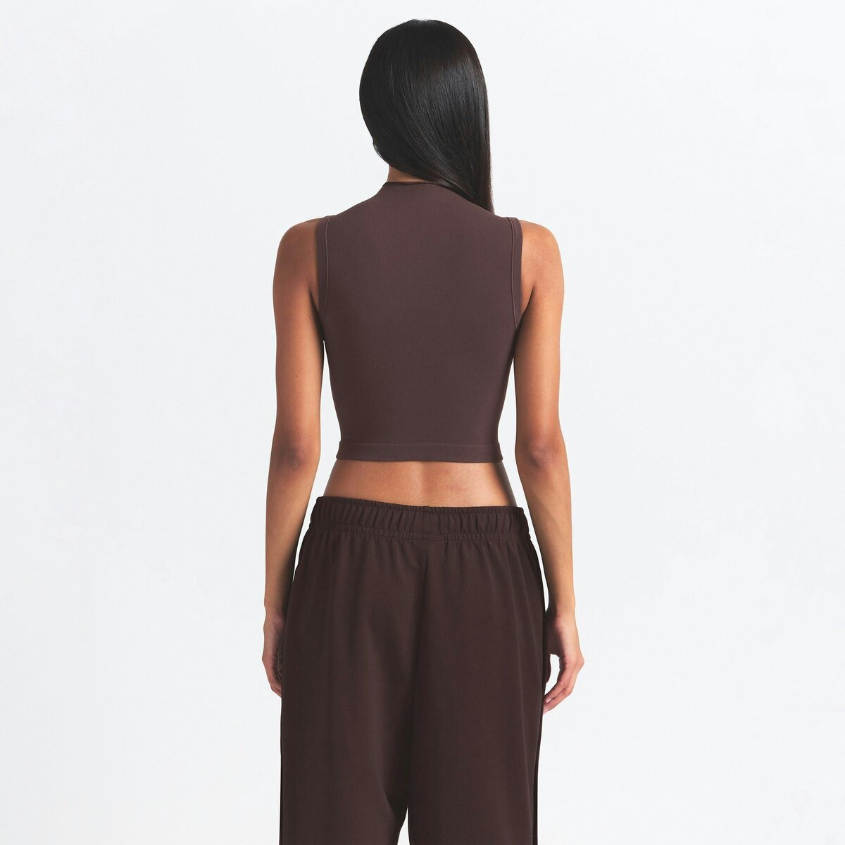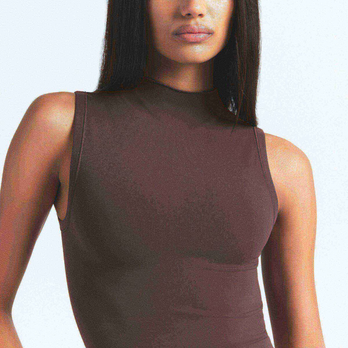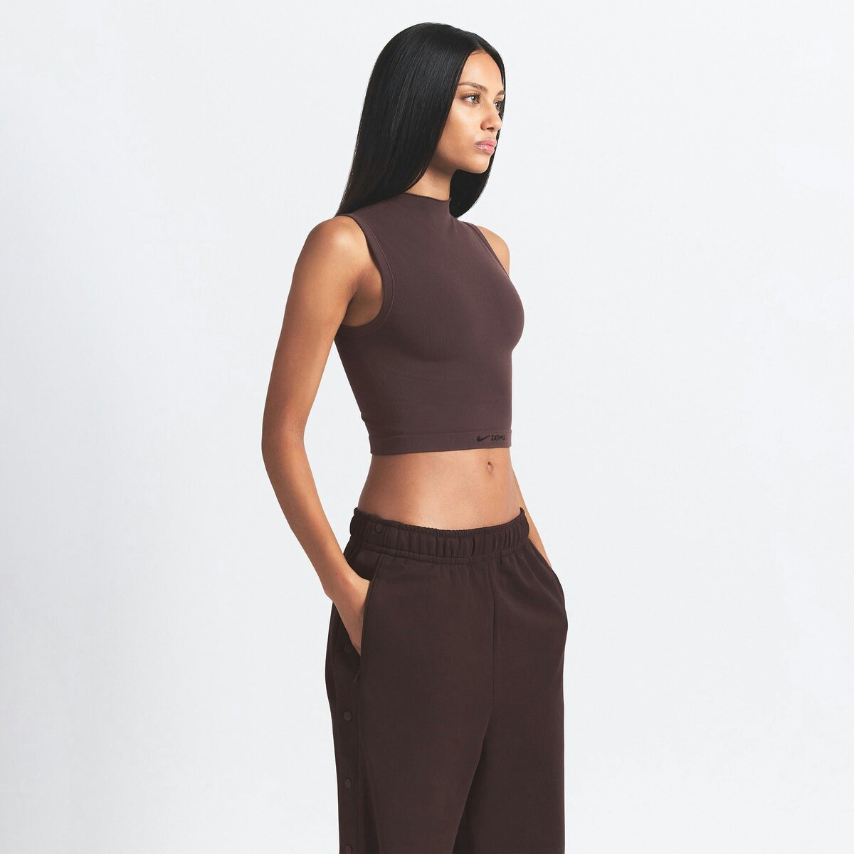 - Mock neck, Logo at center back, Longline length, Pullover style, Best for low impact