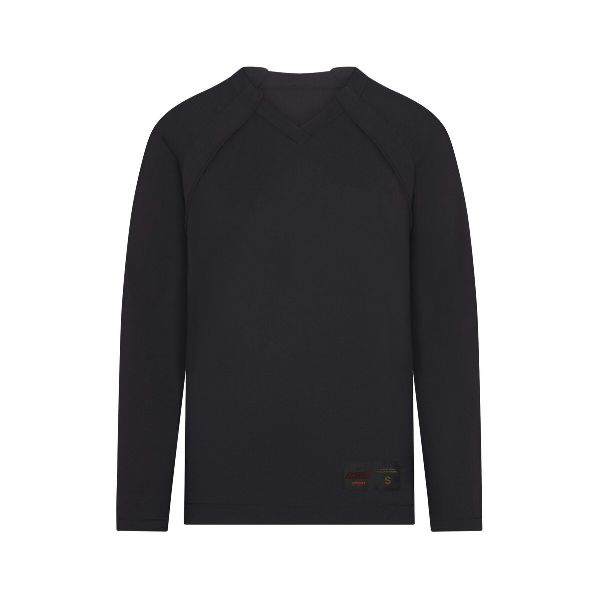• V-neck, Raglan long sleeves, Panel detail on front and sleeve, Woven logo patch on wearers left, Oversized fit