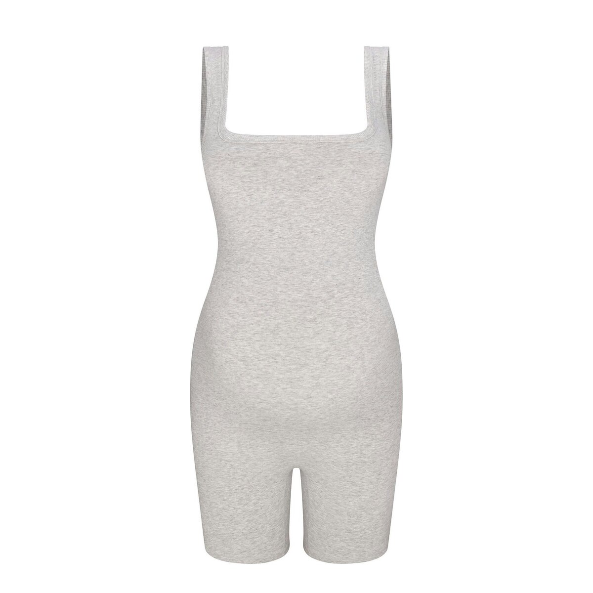 The perfect pregnancy one-piece. Relax or run errands in comfort with this soft and stretchy cotton maternity onesie. Lined in power mesh for compressive support, this mid-thigh solution features added room in the waist for your growing bump. Complete with rib detailing at the scoop neckline and a 100% cotton gusset.