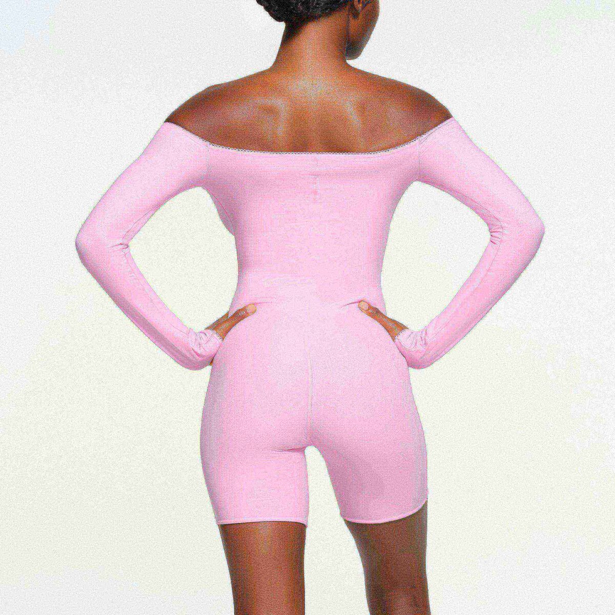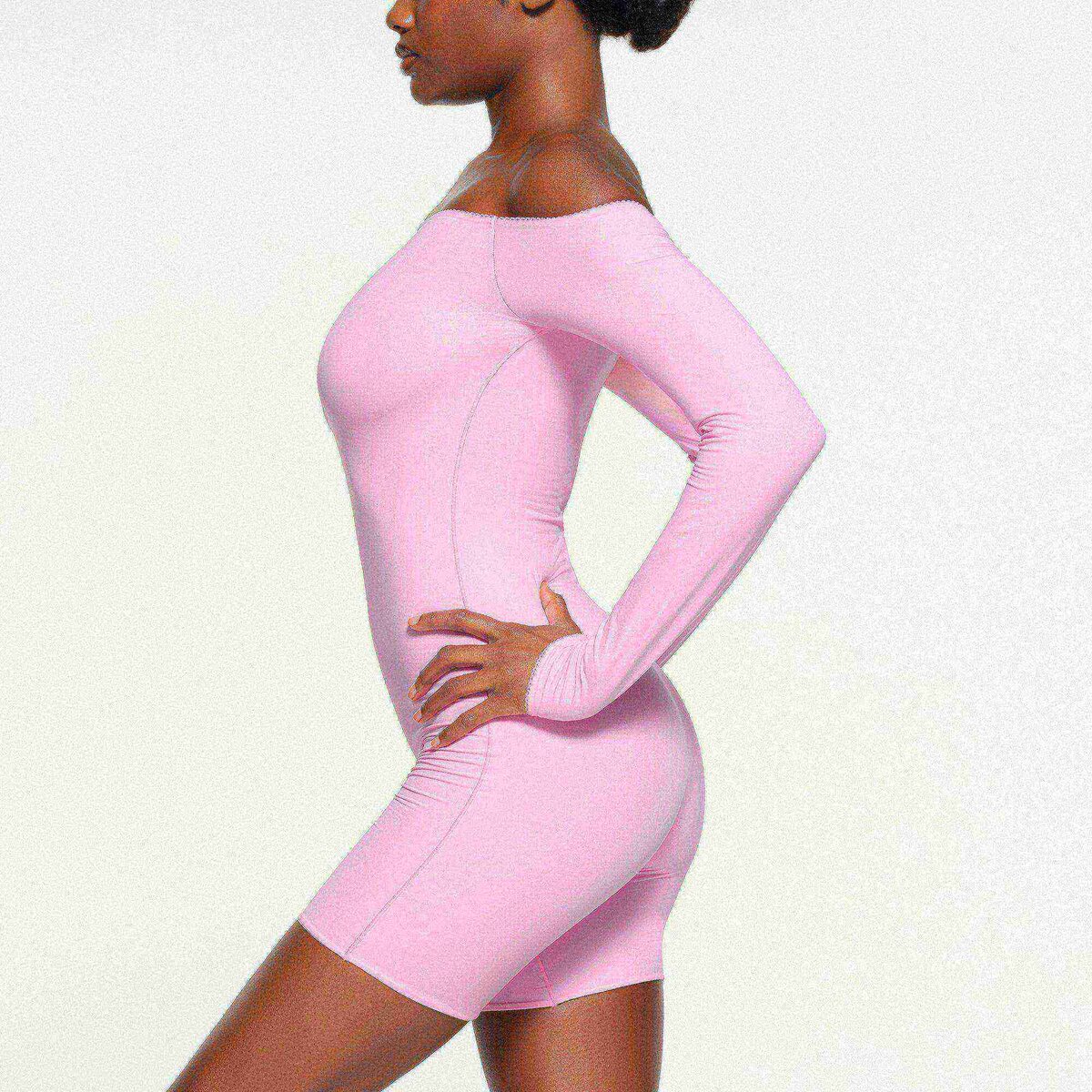 Show some shoulders in this sexy-sweet silhouette. Made with our buttery, five-star fabric that molds to your body for a flattering fit, this onesie is so comfortable it feels like you’re wearing nothing at all. Includes romantic picot trim along the neck and sleeve openings. Hits at the mid thigh and fits true to size.