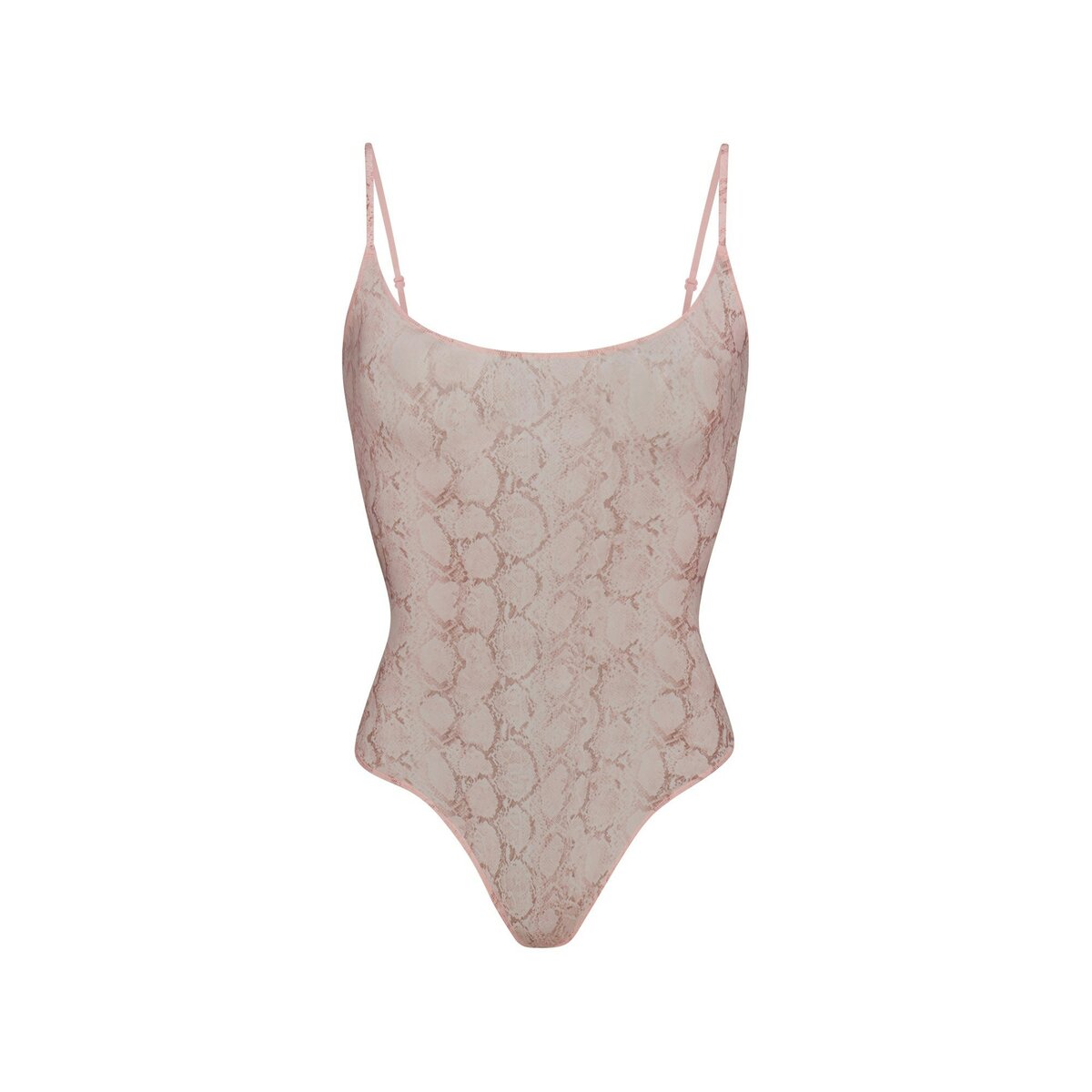• Low scoop neckline, Adjustable straps, Cotton gusset with snaps, Thong back coverage