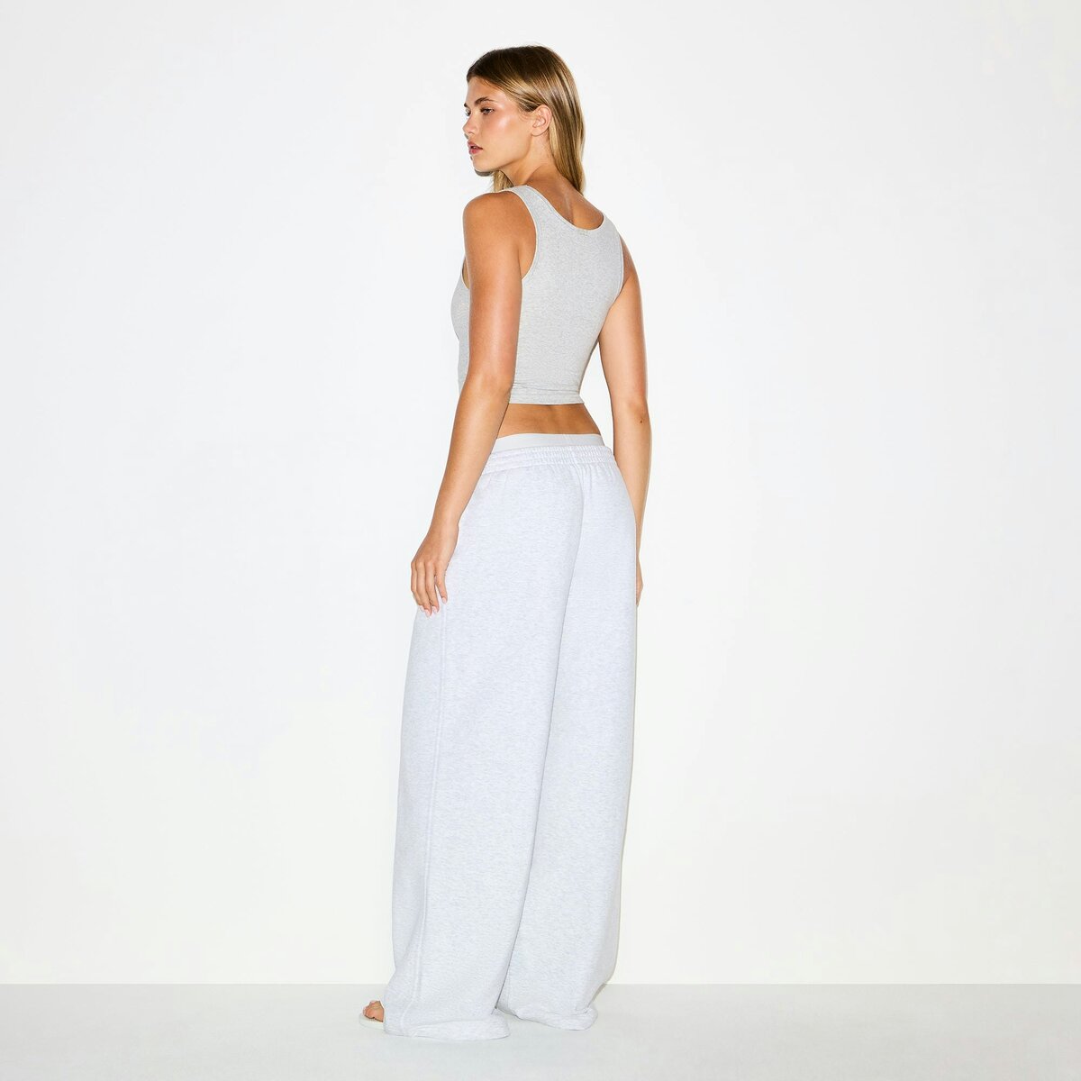 Nail the double waistband trend. This off-duty pant has an oversized fit with a flattering high rise and an effortlessly cool exposed brief waistband. Made from our comfy, cloud-like fleece with the softest plush feel. Features an elastic waist with an interior drawstring and side pockets. Labeled with the SKIMS logo at the center front. Fits true to size.