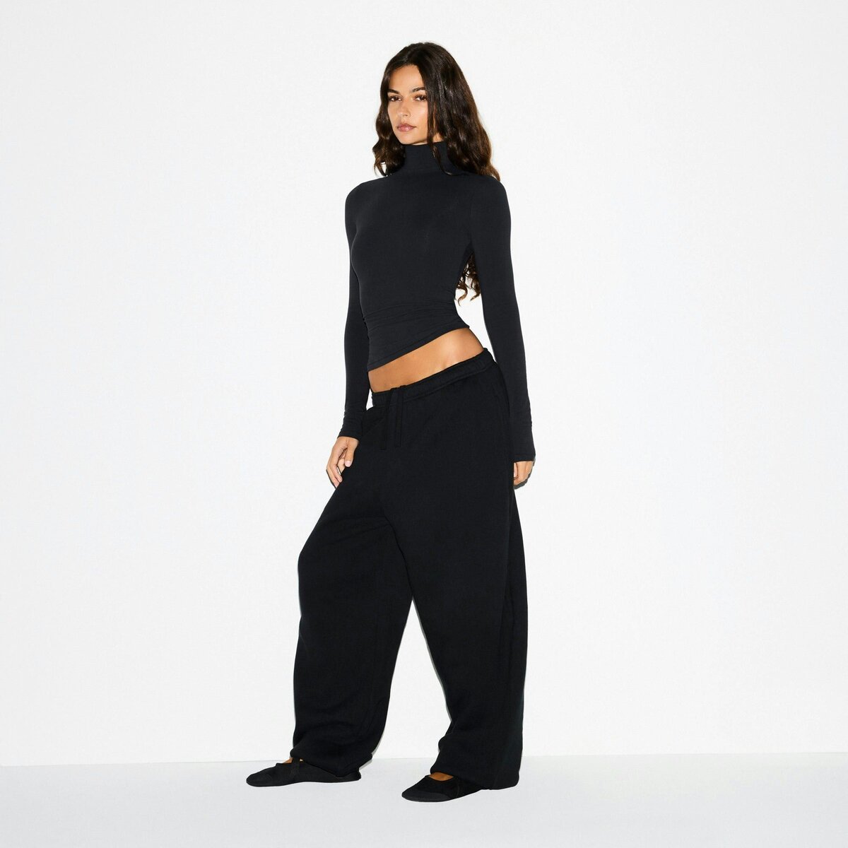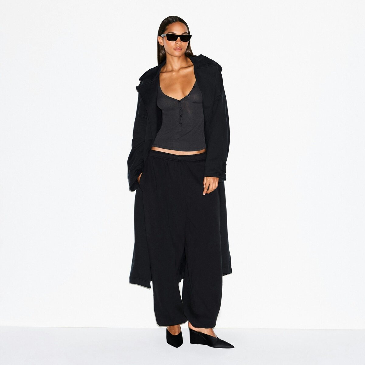 • Mirakela is size 2, 32B, and 5’11” (180cm), wearing SKIMS S; Marie is size 2, 32A, and 5’9” (175cm), wearing SKIMS XS