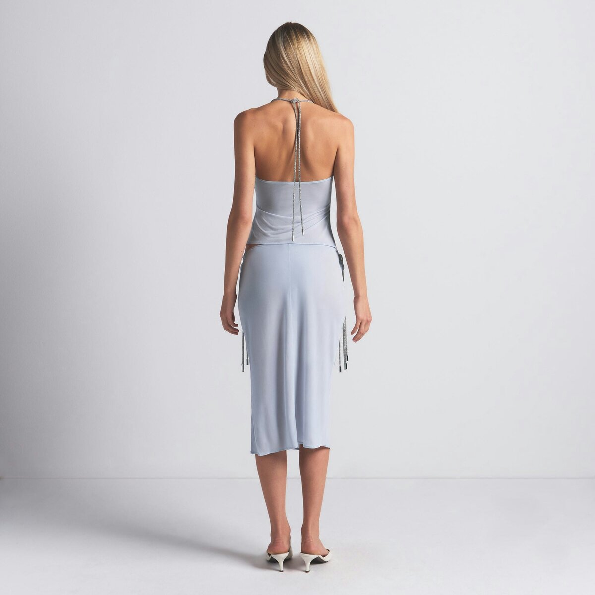RHINESTONE KNIT TIE SIDE MIDI SKIRT