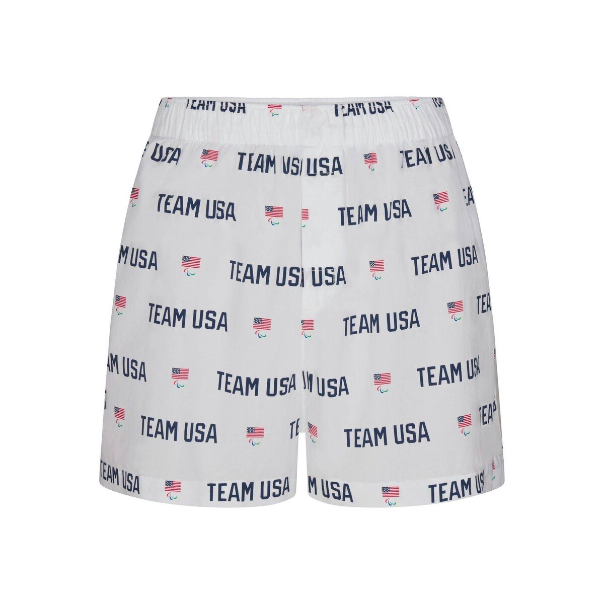 This lightweight, 100% cotton sleep short has a hidden-button fly and an elastic waistband. Features official graphics in support of the Team USA athletes participating in the Paralympic Games Paris 2024. Fits true to size.
