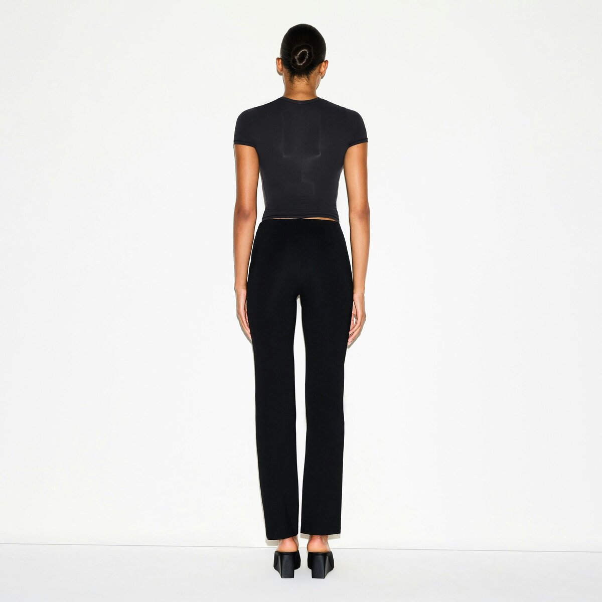 Upgrade your work to weekend wear. These high-waisted straight leg pants are made with our soft, smooth mid-weight fabric and elevated with pintuck details for a clean, tailored look. Features an elastic waistband, flattering back darts, and an invisible side zipper. Complete with a woven SKIMS logo on the interior waistband. Fits true to size.