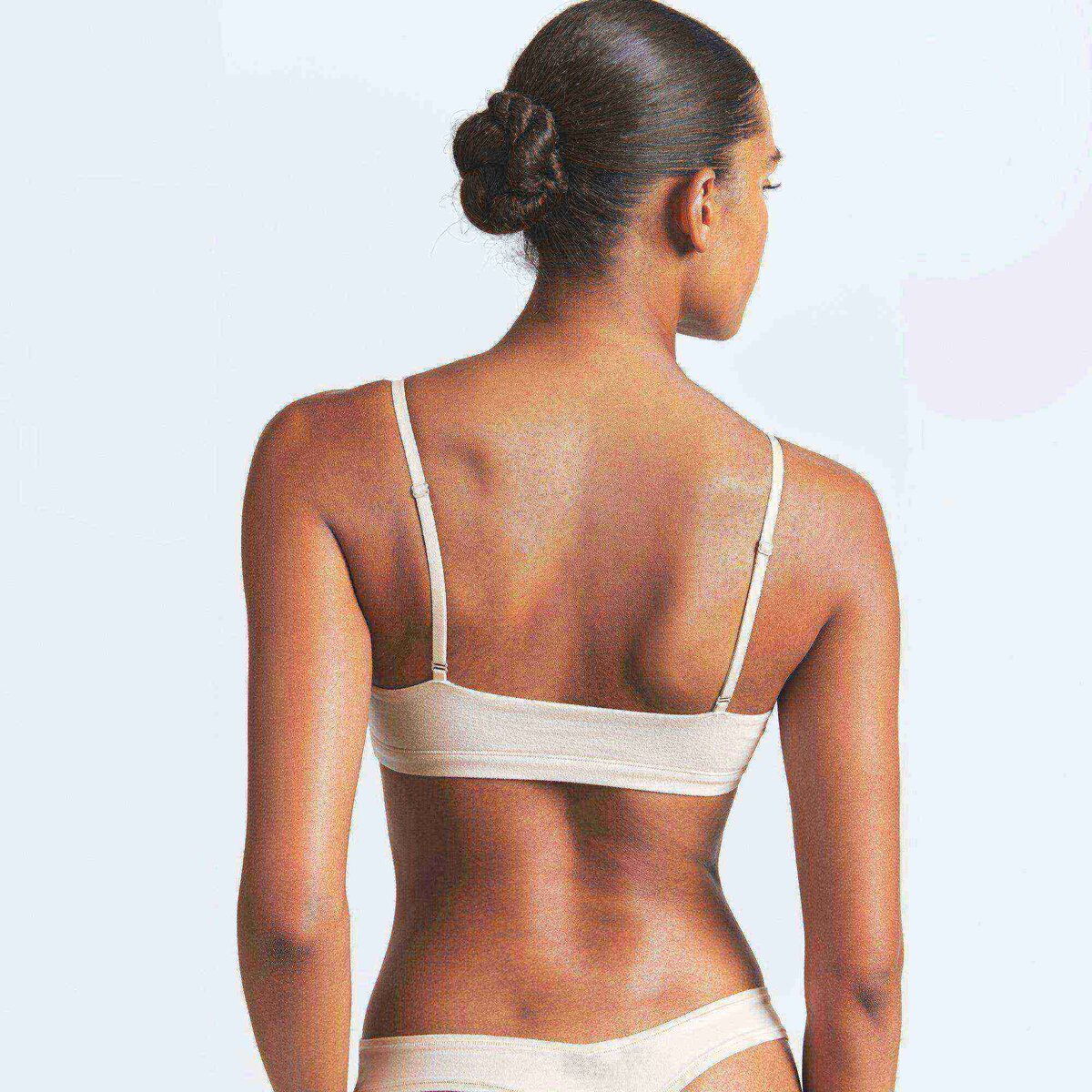 • Front scoop neckline to provide subtle coverage, Pullover style (no hook and eye), Fully adjustable straps, Lined in self cotton jersey for softness, Soft elasticated band that provides light, comfortable support