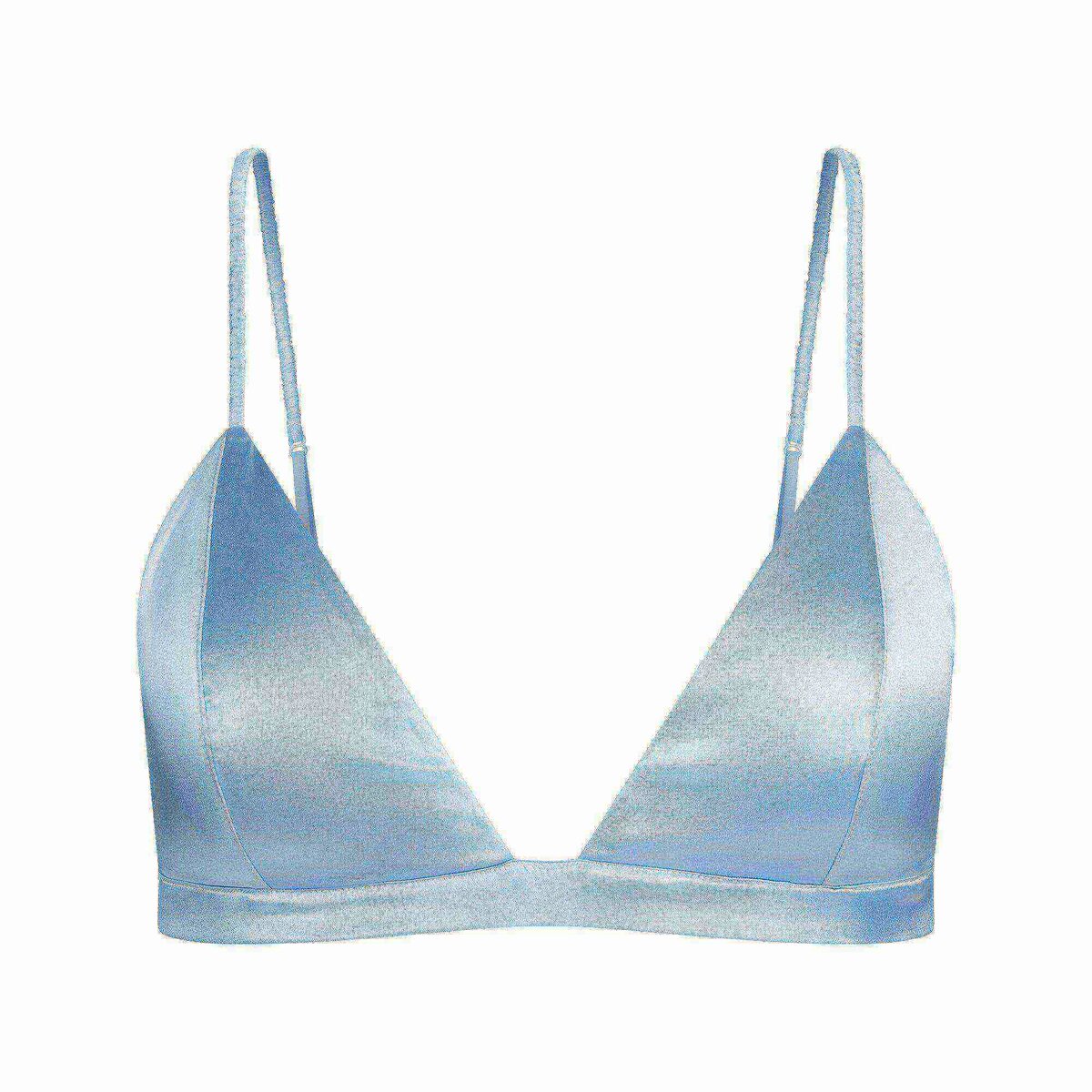 Your most elevated first layer. Designed in our signature silk fabric, this triangle bralette features a supportive elastic underband and lightly lined pads. Complete with adjustable straps and a hook and eye back closure. Fits true to size.