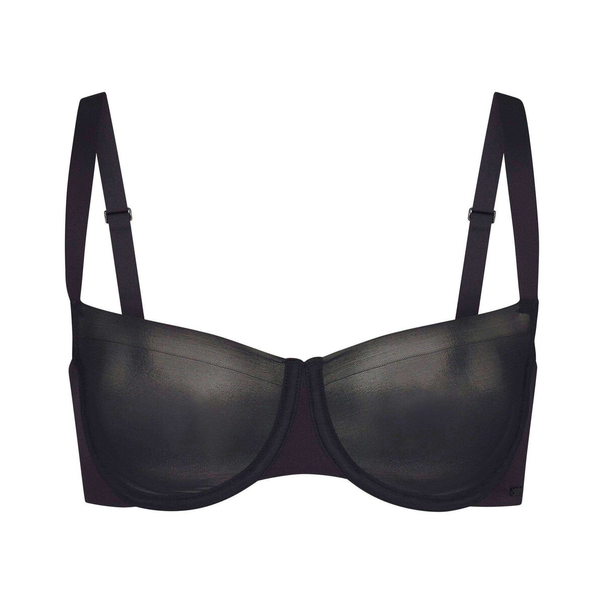 Flatter your curves in this sheer, sexy balconette designed with comfortable, next-level mesh. This minimal coverage style has a seamless raw edge finish, making it invisible under clothing, plus soft, flexible underwire for all the support you need. Features sheer unlined cups, smoothing microfiber wings, SKIMS logo on front wing, and hook and eye back closure. Fits true to size. Complete your set with our selection of panties at special bundle pricing.