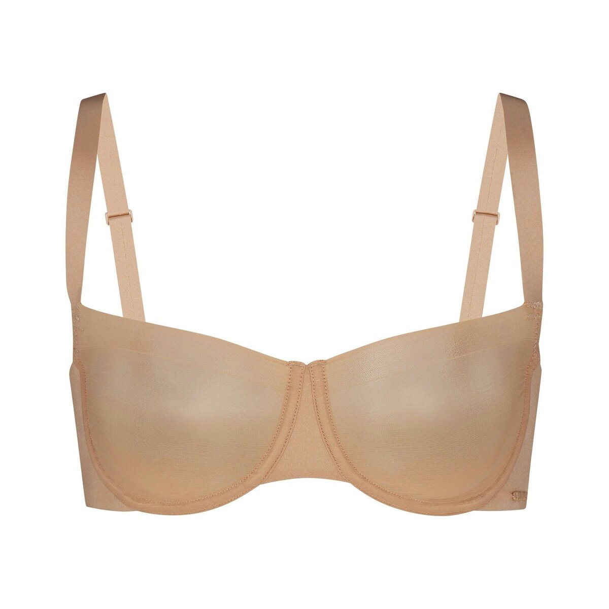 Flatter your curves in this sheer, sexy balconette designed with comfortable, next-level mesh. This minimal coverage style has a seamless raw edge finish, making it invisible under clothing, plus soft, flexible underwire for all the support you need. Features sheer unlined cups, smoothing microfiber wings, SKIMS logo on front wing, and hook and eye back closure. Fits true to size. Complete your set with our selection of panties at special bundle pricing.