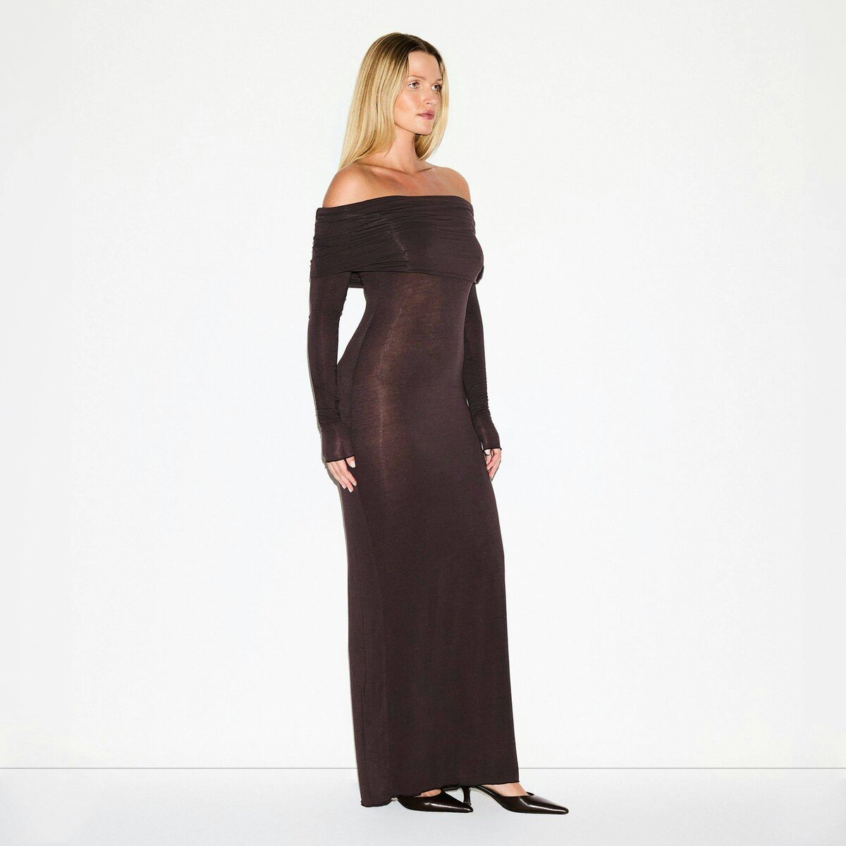 SHEER MODAL OFF THE SHOULDER LONG DRESS