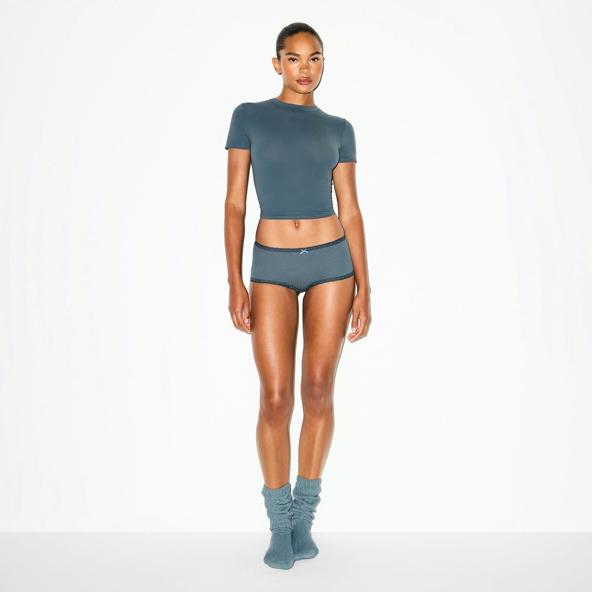 The prettiest pointelle. Designed in our new lightweight cotton pointelle fabric, this lightweight boy short features lace trim details at the waist and leg opening and a center bow detail. Complete with a 100% cotton gusset and fits true to size.