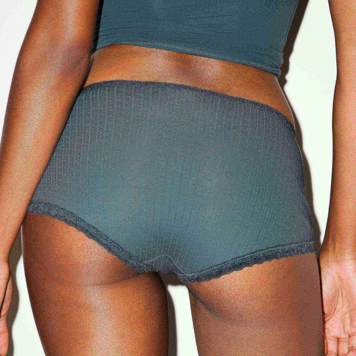 - Lace trim at waist and leg opening, Bow at center front, 100% Cotton gusset, Maximum back coverage