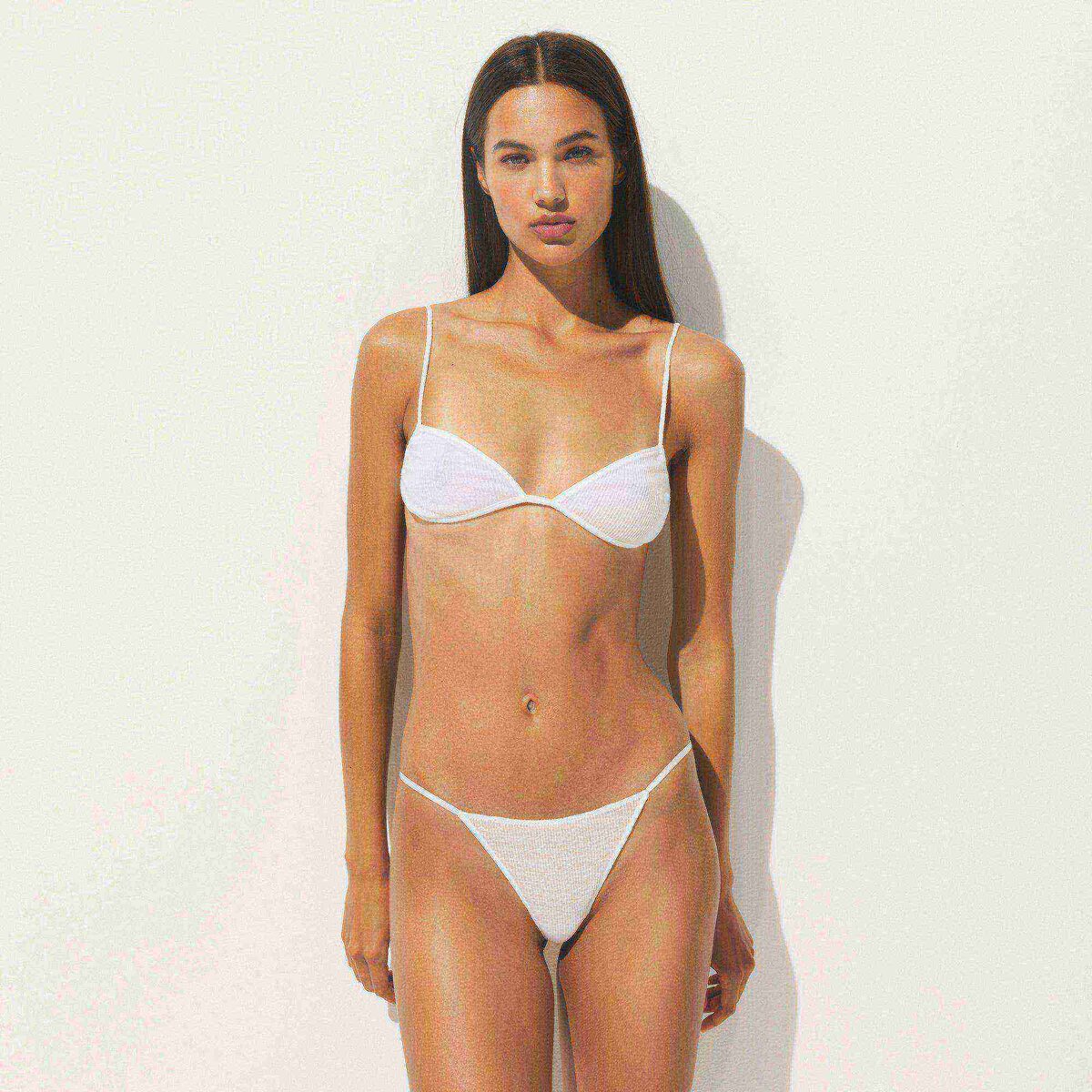 Delicate meets daring in this sexy sheer panty. Designed with our soft, stretchy ribbed fabric, this minimal coverage thong will have you feeling sexy underneath it all. Complete with elastic at the waist and leg opening and a 100% cotton gusset. Fits true to size.