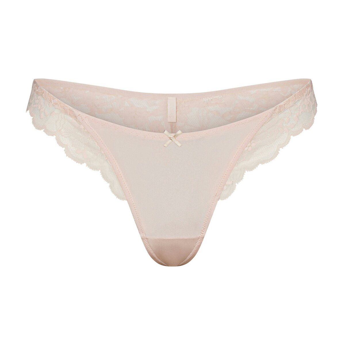 • Dipped front, Bow at center front, Micro fiber front panel, Lace details at front leg and back pantycotton gusset, Thong back coverage