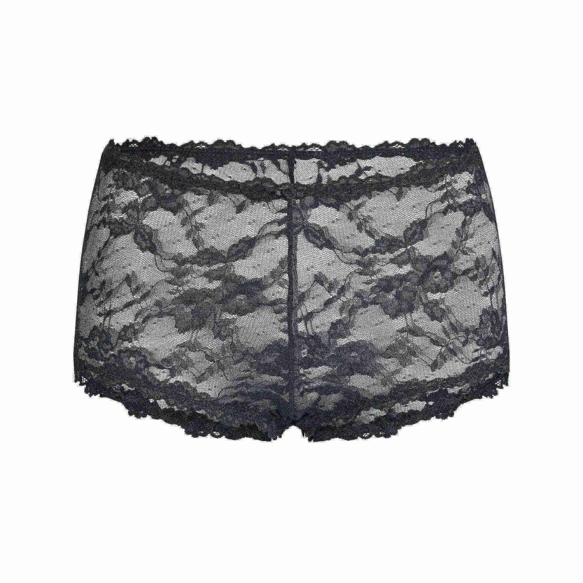 A sultry, sheer boy short panty with stretchy all-over lace that complements your curves perfectly. Features a mid-rise fit, lace trim along the waist and leg opening, a rosette detail at the center front, full back coverage, and a cotton gusset. Fits true to size.
