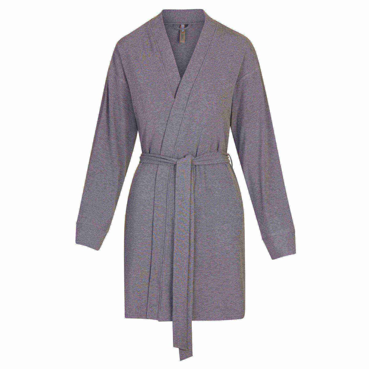 Wrap yourself in comfort with the SOFT LOUNGE ROBE in HEATHER GREY. A cozy robe for lounging. Shop now and complete your loungewear collection!
