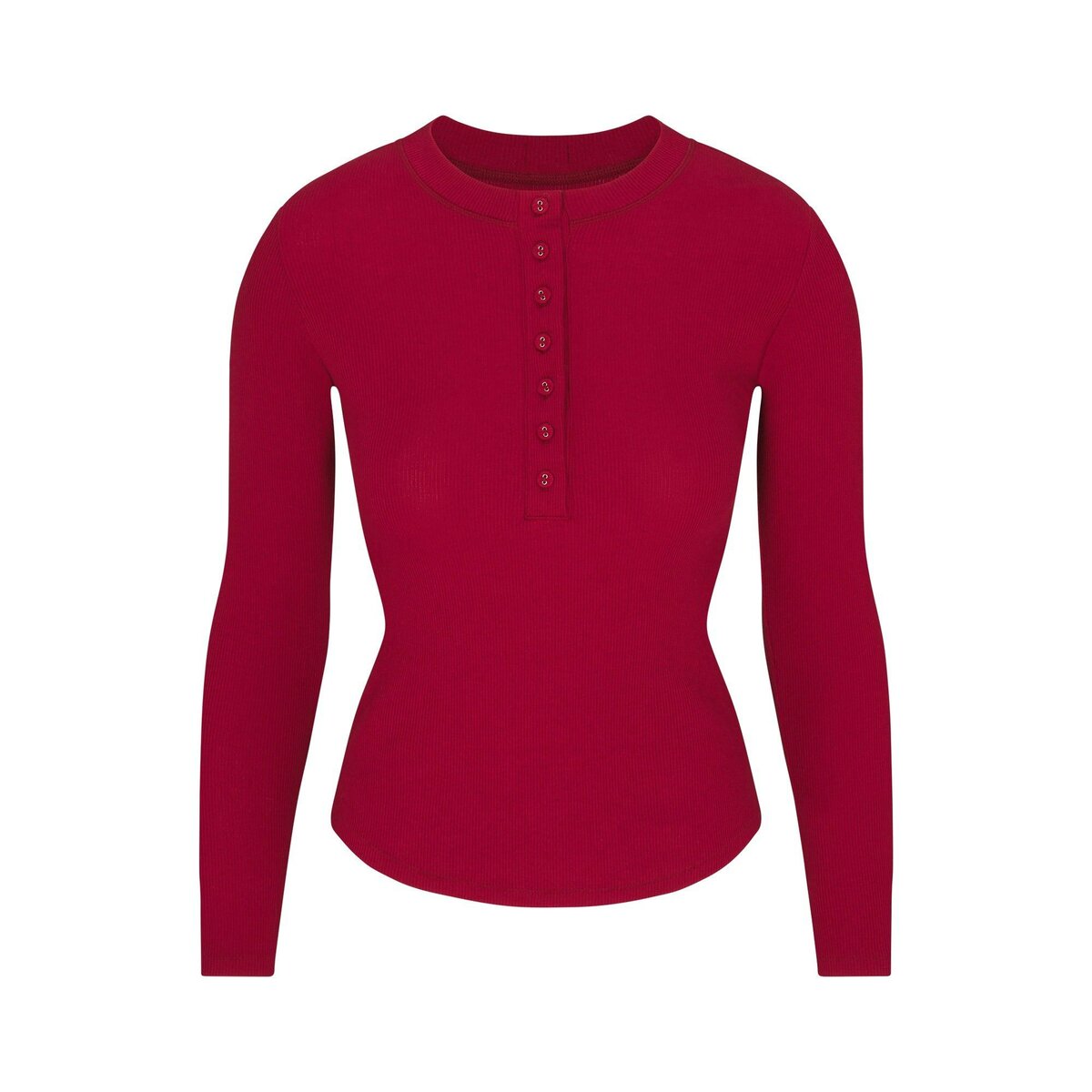 Lounge in style and comfort. The scoop henley top with long sleeves pairs perfectly with low-rise leggings featuring an elastic waistband. Made from our signature Cotton Rib fabric, this set blends cozy comfort with a fresh holiday twist.