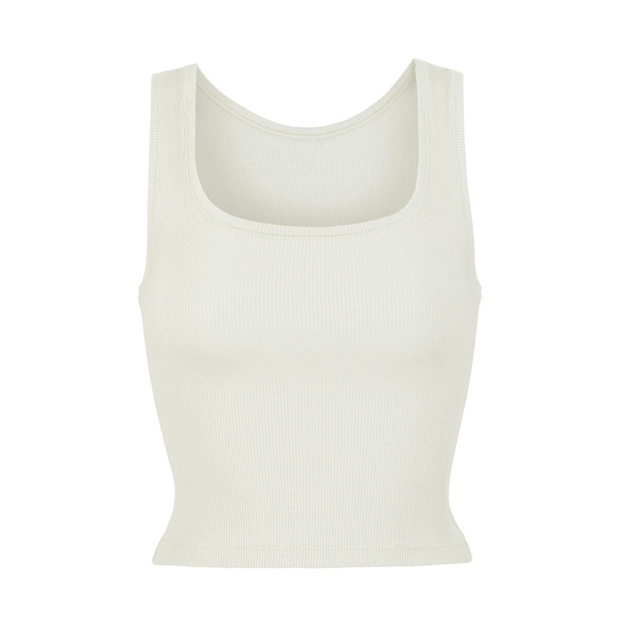 Everyone agrees – this tank is 10/10. This classic style is made with our iconic, breathable ribbed cotton that stretches to your curves for an all-day comfortable, flattering fit. Features a chic scoop neck and a slightly cropped length. Fits true to size. For a longer length, check out our Cotton Rib Long Tank.