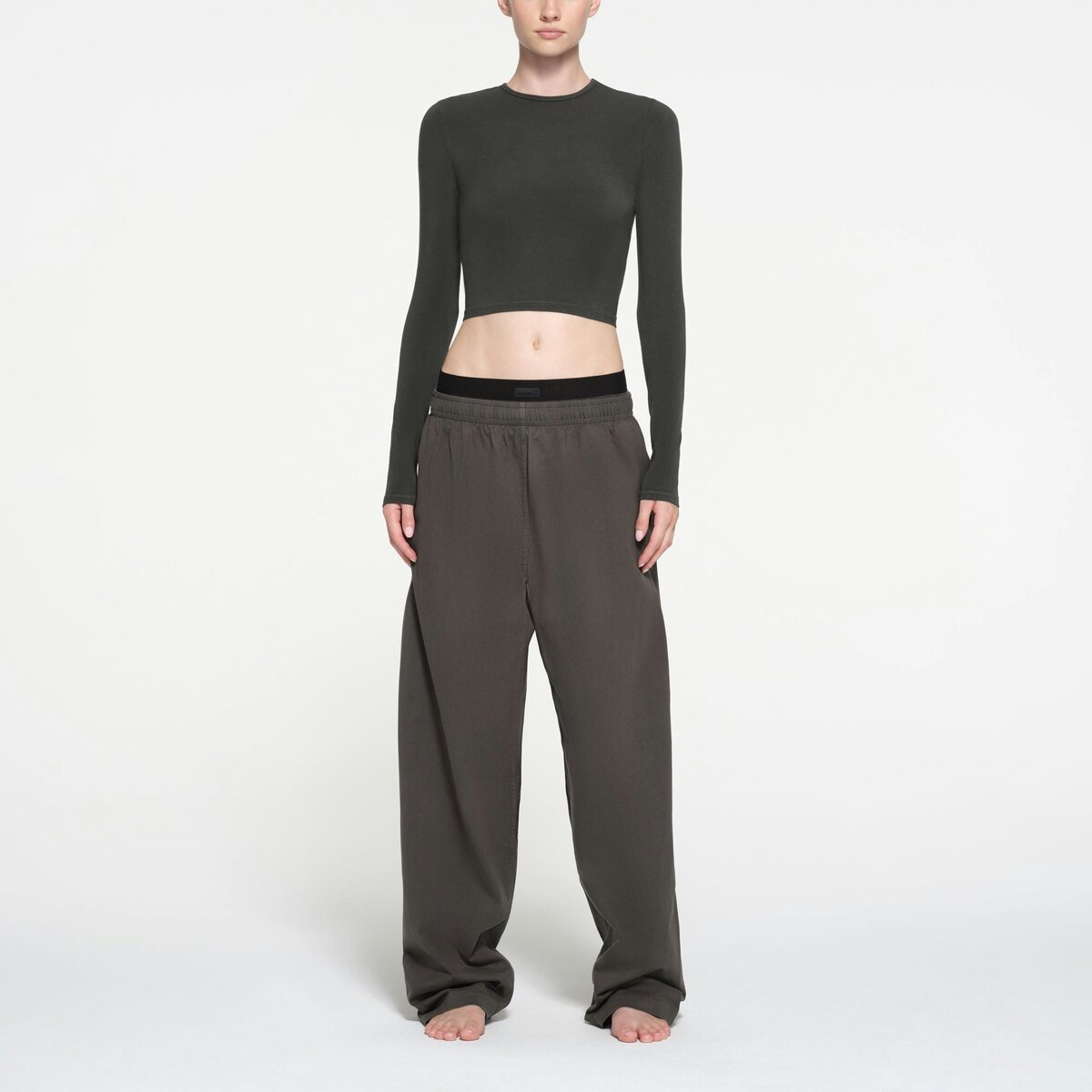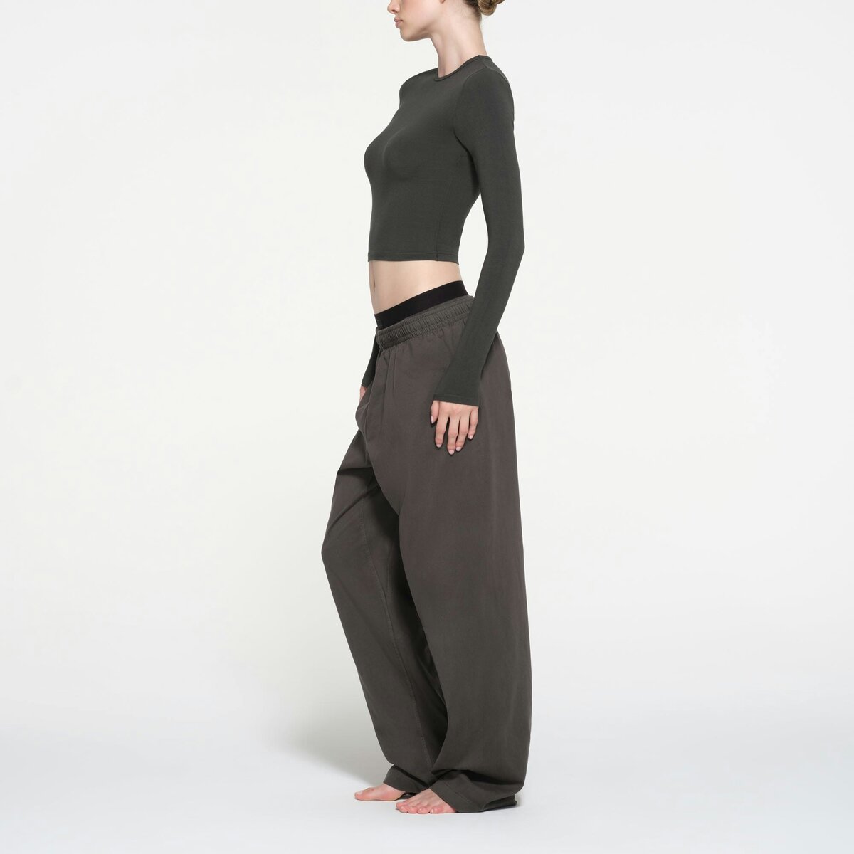 - Fitted long sleeve t-shirt, Classic high crew neckline, Body-hugging fit, Hits at natural waist