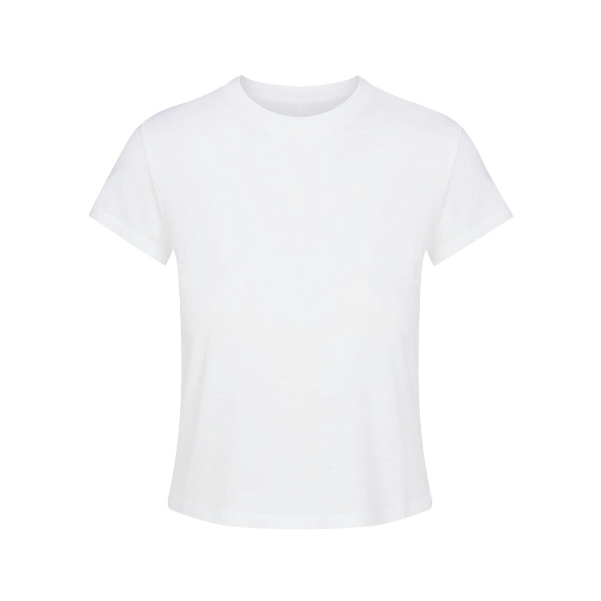 Workdays to weekends – you’re wearing this tee. An instant everyday staple, this comfy short sleeve has a shrunken fit and a soft, airy feel. Features a classic crew neck with ribbed detailing and a SKIMS logo label at the center back. Hits below the natural waist and fits true to size.