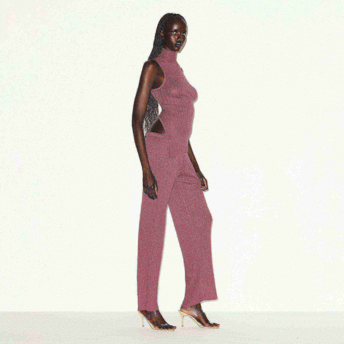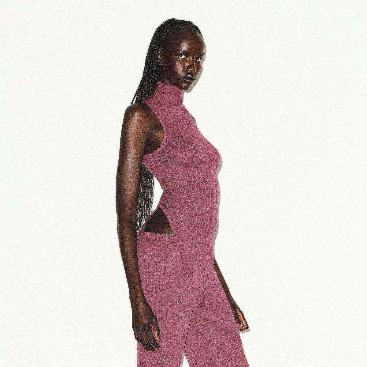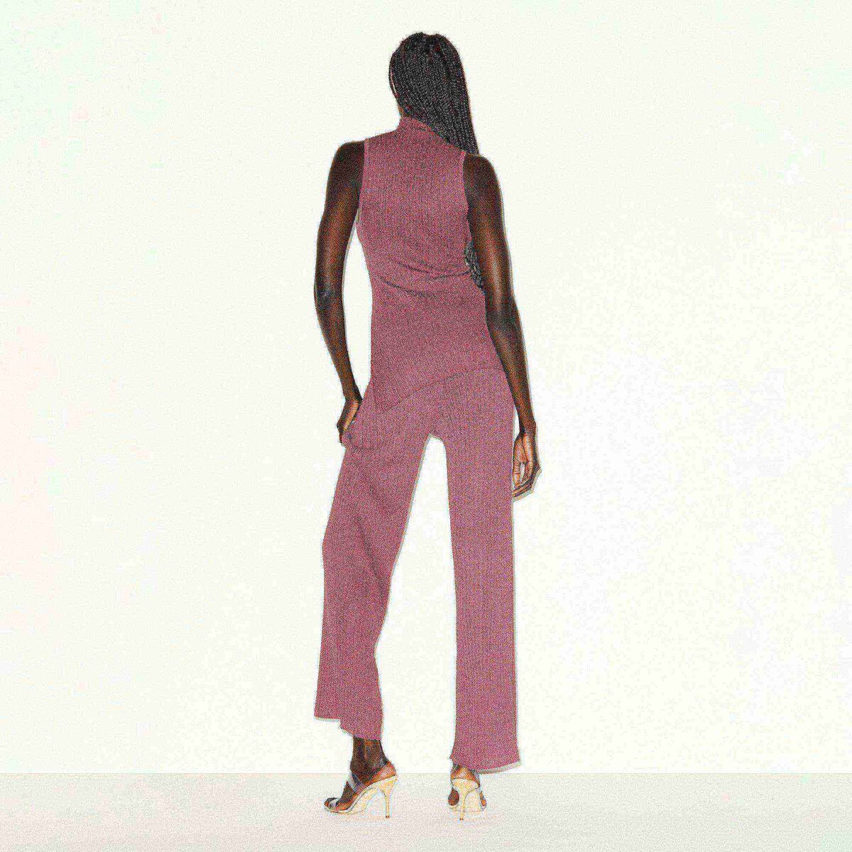 - Mock neckline, Sleeveless, Fits tight to body, Side slits at hem, Long length