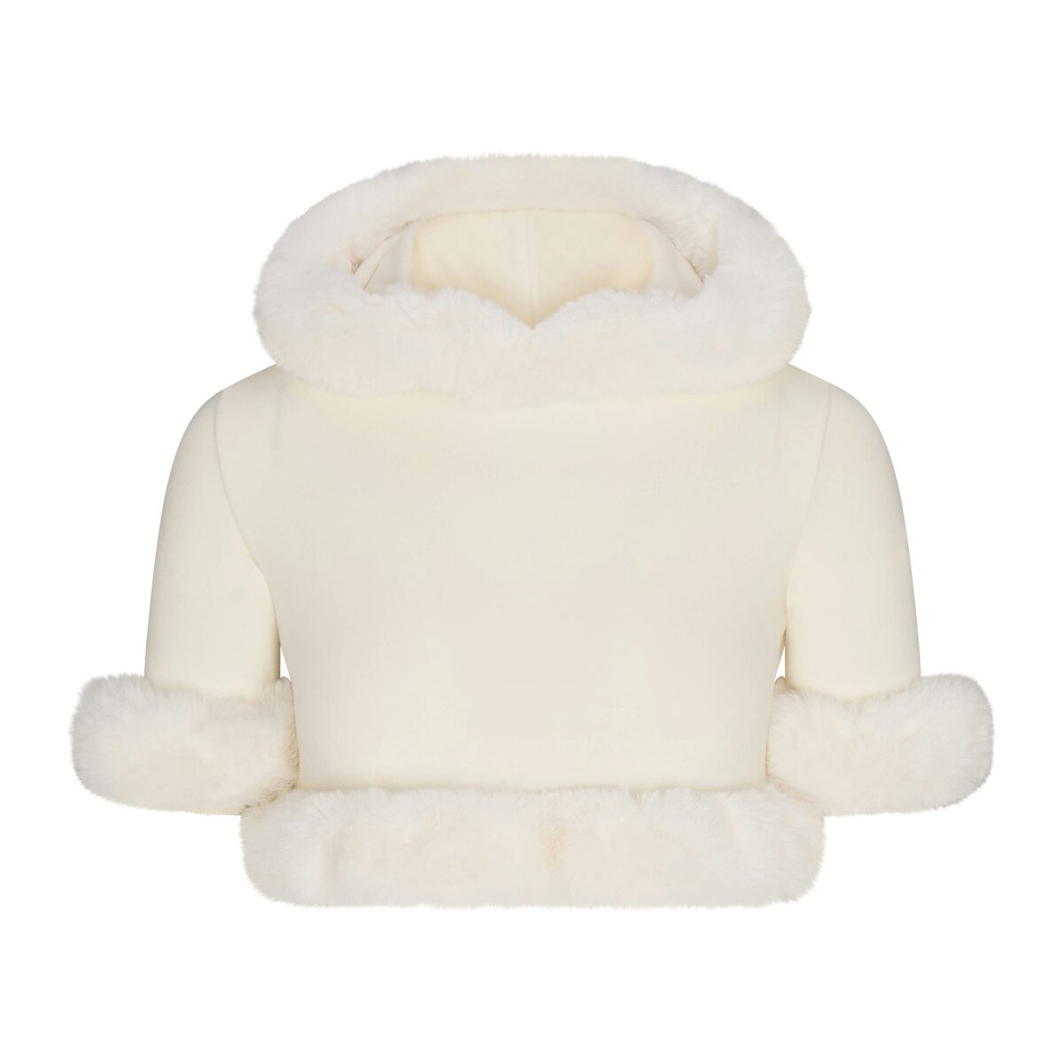 • Faux fur trims at hood, Sleeves and hem, Fit with ease, Cropped length