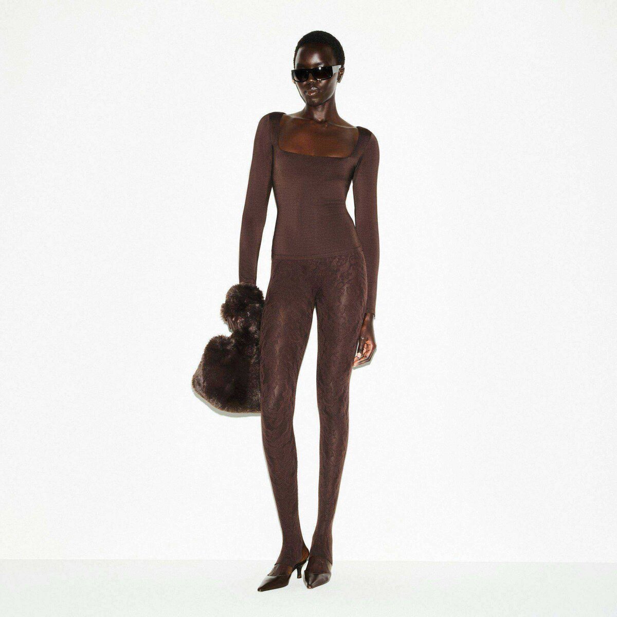• Straight neckline, Interior shelf bra for light support, Long sleeves, Fits tight to body, Standard length