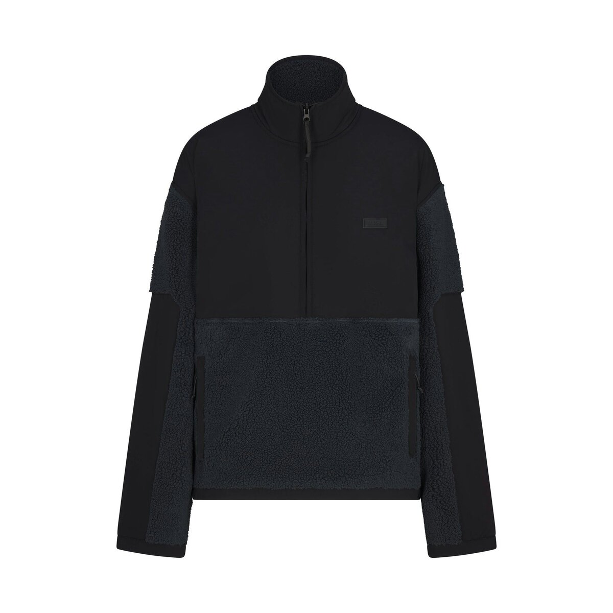 Your comfiest second layer. This relaxed half-zip pullover is essential to any cold-weather wardrobe thanks to our signature soft faux shearling. Features a loose mock neck, woven panel detailing, and mesh lining for a sporty look. Complete with side pockets, an adjustable cord at the hem, and a SKIMS logo on the side chest. Fits true to size.
