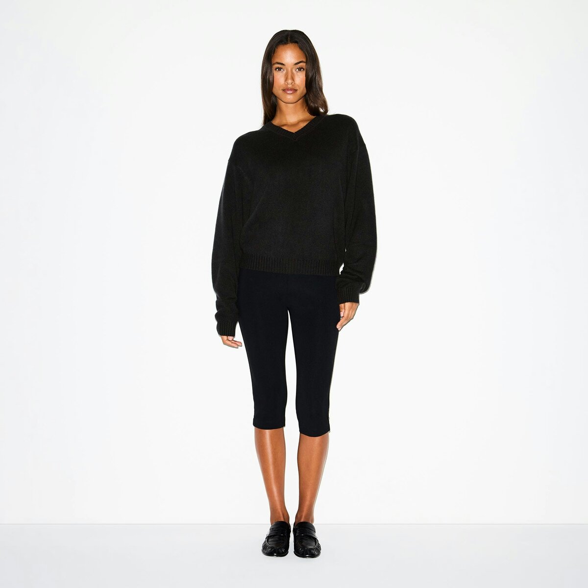 Sweater season, perfected. This luxe, v-neck sweater is made with our plush wool-cashmere blend and features a drop shoulder silhouette. Features an oversized fit and ribbed details at the neckline, cuffs, and hem. Fits true to size.